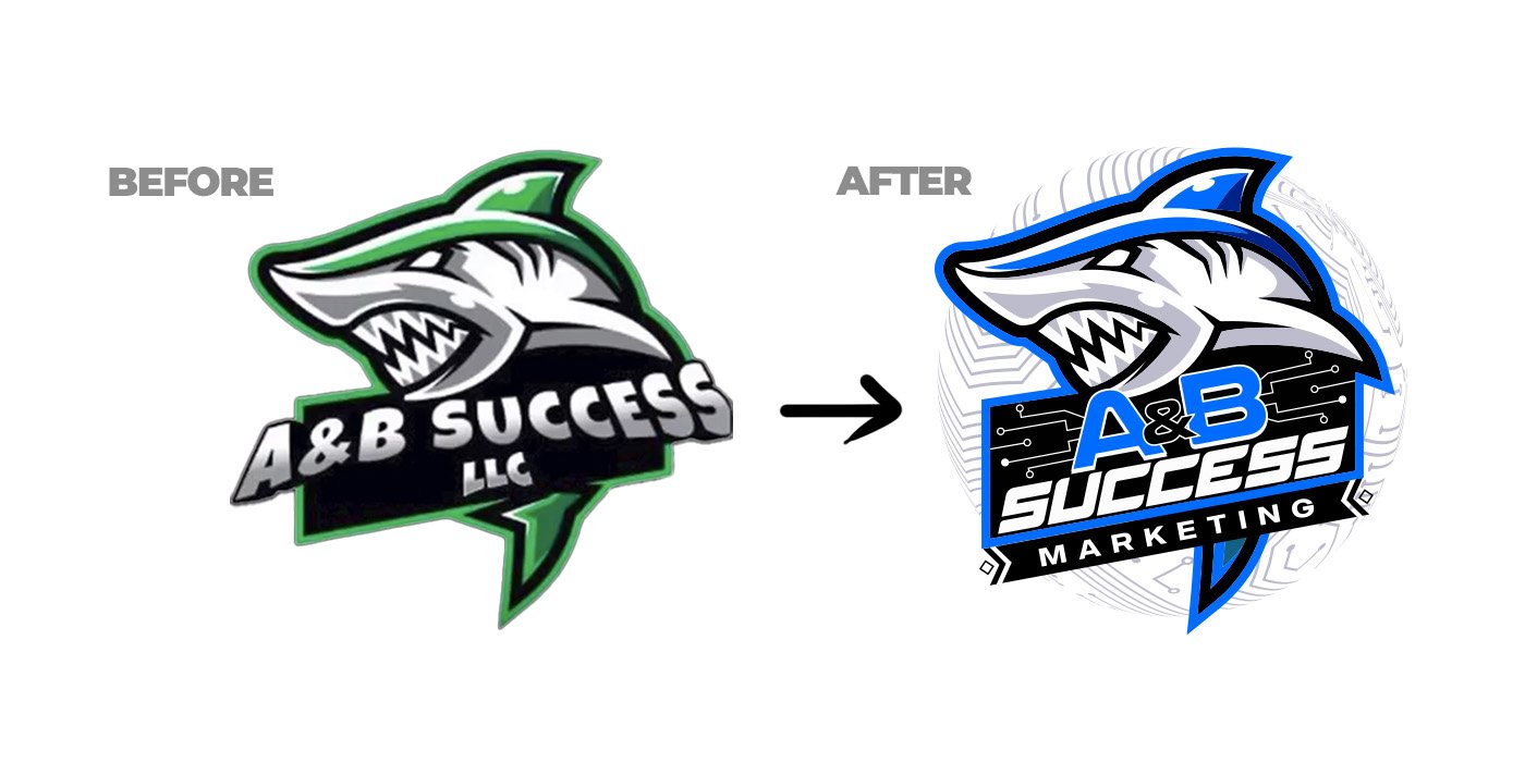 A&B Success is a fast-growing marketing company with a variety of services, they were looking for a revamp of their logo and branding identity that matched their industry, but maintained their mascot, the shark.